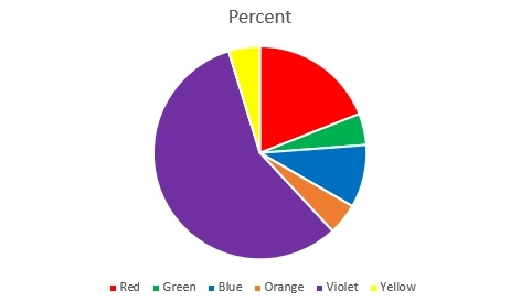 Here I want to show the reader a comparison of the popularity of some colors of some flowers. Neither a line or bar chart is really appropriate, but a pie chart is great.