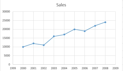 Intuitively, the second seems easier to read, but why? The first is a line chart there are lines between the data points and that implies that if we looked somewhere between the two points, we'd be able to see something along that line. But there is nothing between 2005 and 2006! These are discreet values on the independent (horizontal) axis. A line chart is generally used to provide for interpretation of data between points or to show a trend. Since these data really don't show a trend, it's hard justify its use here.