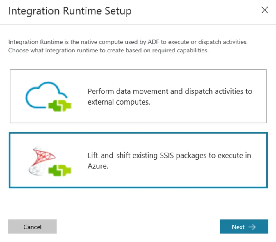 Taking advantage of Azure-SSIS IR gives you the best of both worlds: a fully managed runtime environment on Azure plus the ability to retain your existing SSIS packages, tools and processes.