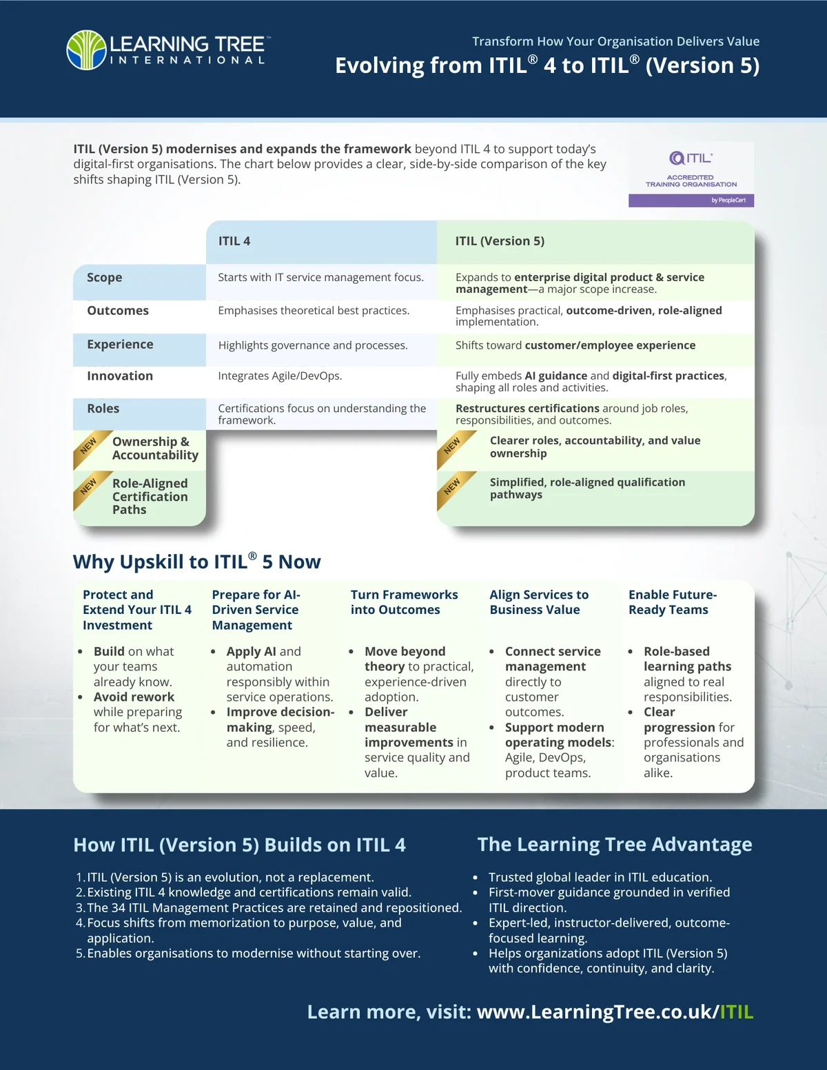 Download now for the strategic benefits of the ITIL 5 transition, including AI integration and role-based learning paths that build on existing ITIL 4 knowledge.